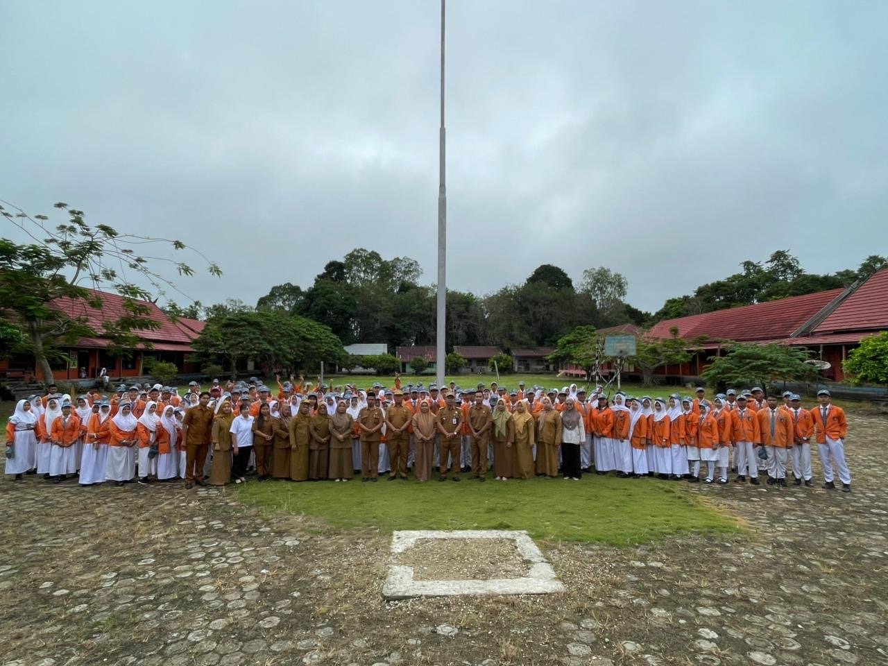 Kehadiran orang nomor satu di Kecamatan Dusun Utara ini disambut antusias oleh seluruh warga sekolah, mulai dari jajaran guru hingga ratusan siswa-siswi yang berbaris rapi mengikuti prosesi upacara.