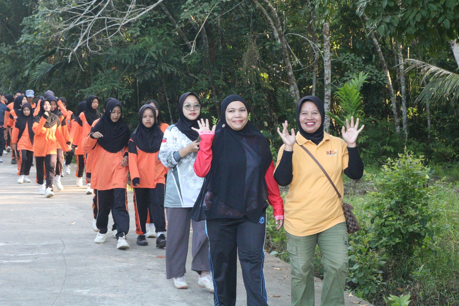 Kepala Sekolah SMAN 1 Dusun Utara yang turut memimpin barisan jalan sehat.